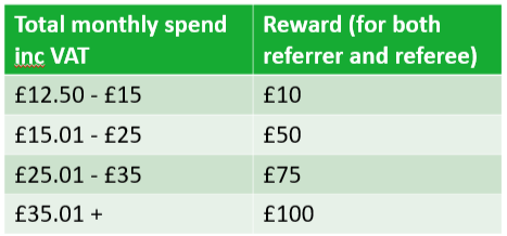 Once you have bought a broadband plan with us, we’ll need to do some checks before you and your friend both get rewarded. If you haven’t received your rewards, you should check that you’ve both met the terms of the promotion: