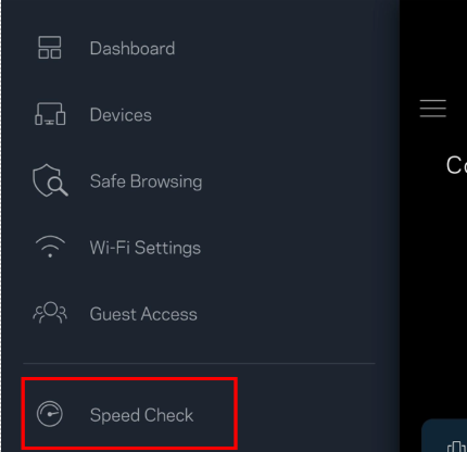 - Select ‘Speed Check’.